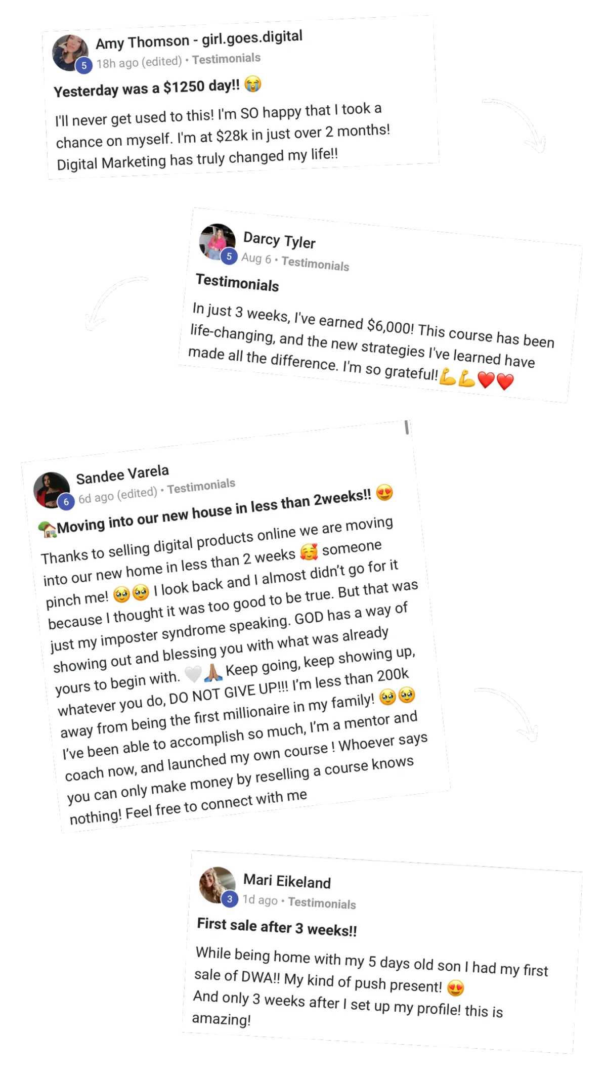 I’ve been part of the DWA community for 9 months now + i can happily say it’s changed my life. I’ve created 2 of my own products with 5 figure launches & have 5 figure months every single month. i officially hit $150,000 last week.